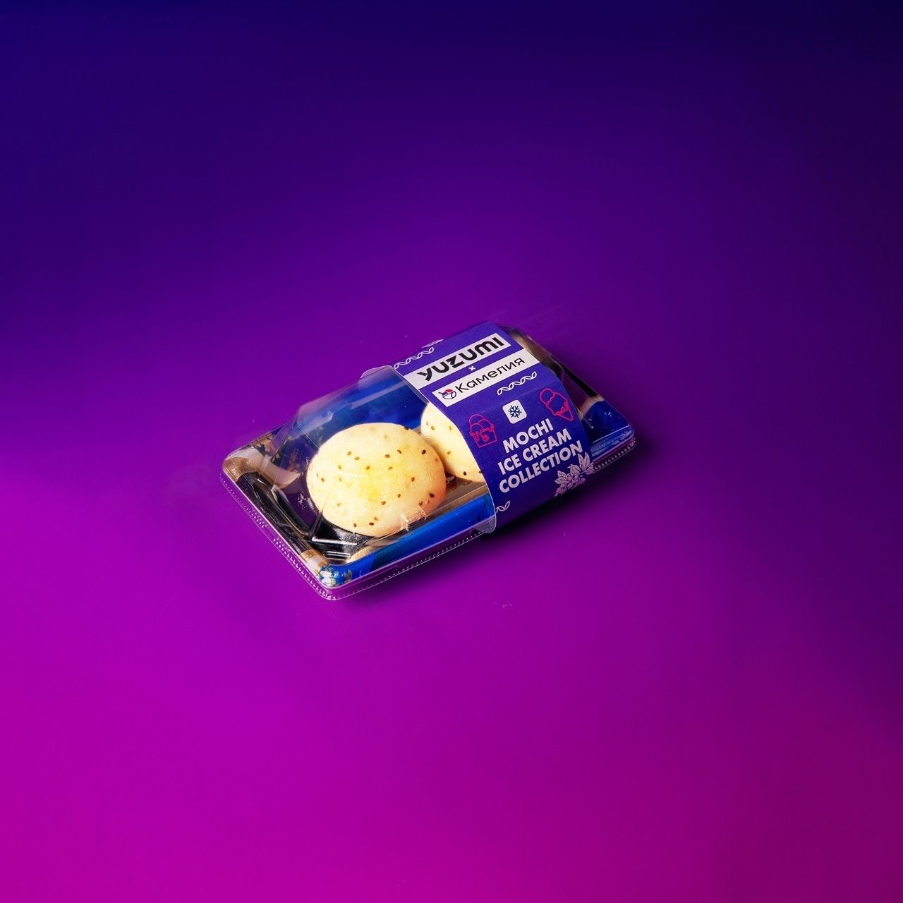Моти-мороженое «Маракуйя» ( рисовое тесто, мороженое Камелия (молоко цельное сухое, молоко цельное сгущенное, сахар, маракуйя, масло сливочное, желатин)