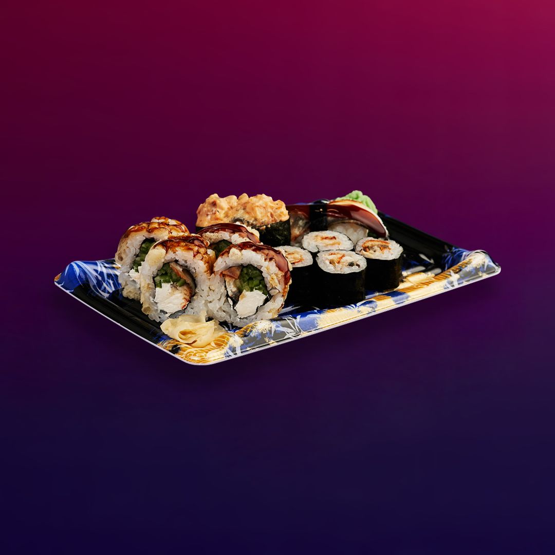 В суши-маркете Yuzumi мы предлагаем вам насладиться этими восхитительным набором «Окинава» в составе которого роллы: Аризона, угорь. Суши с угрём, спайси суши с угрём.